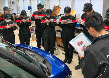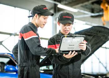 主に、社会人としての心構え・行動規範、車の基本構造について、日産車やアフターサービス等の商品知識など日産グループの一員として全員が身につけるべきことを学びます。
